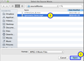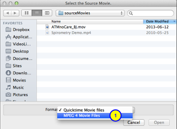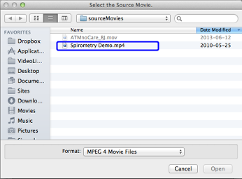 however the movie 'Spirometry.mp4' is an MPEG 4 movie and is greyed out so can't be selected.